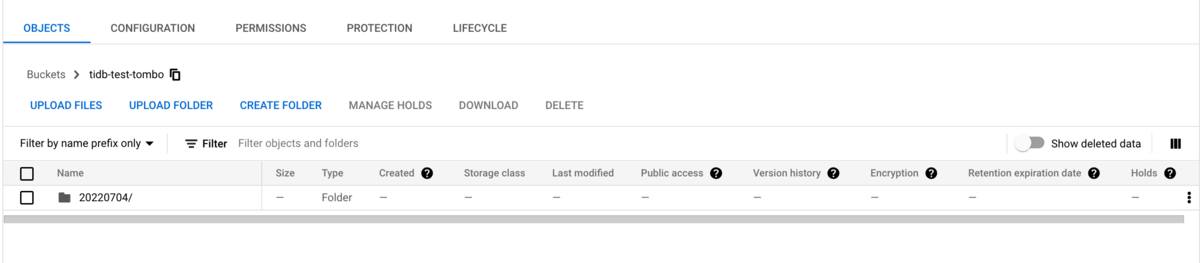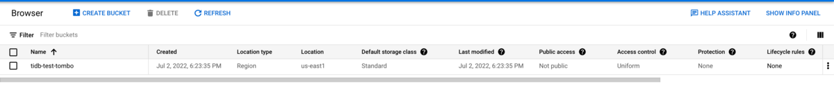 bucketはtidb-test-tomboを作成しました。